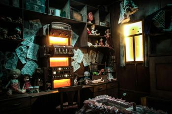 This dark room combines a tragic scenario with a very elaborate universe. Storytelling, decoration, sound and light effects are at the highest level. Unusual puzzles, that will surprise players of any age. Bonus: A background shared with the "Haunted Motel" room, where the same journalist studies paranormal events. These two rooms are often purchased together for the same premises.